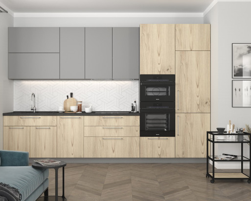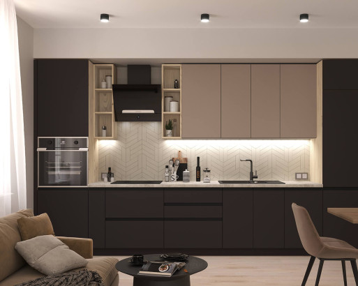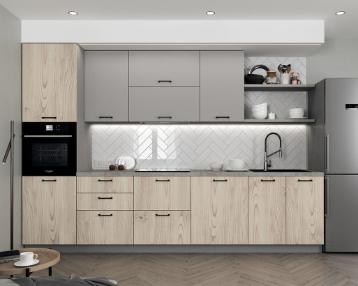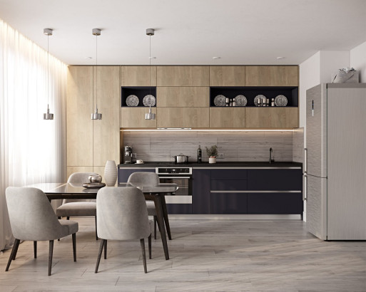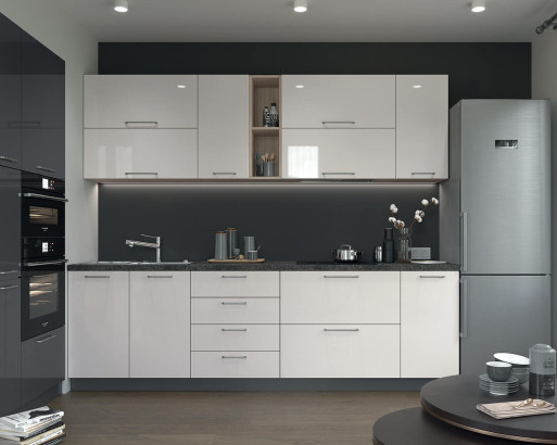 Все кухни на нашей фабрике изготавливаются на итальянском оборудовании. На предприятии введен строгий контроль качества по система ISO-9001. Внутри наших кухонь итальянские, немецкие и австрийские материалы. Ничего не скрипит и не болтается даже спустя годы эксплуатации. А на долговечность влияет корпус из ДСП повышенной прочности Egger, поэтому мы так уверенно говорим о ней.