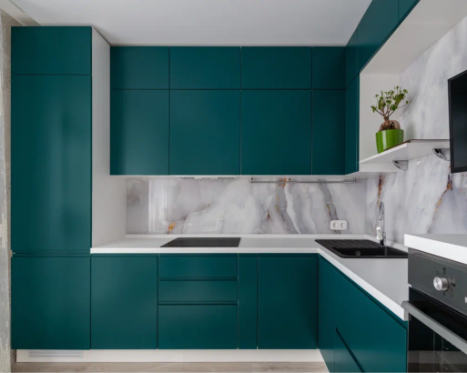 • Форма гарнитура. Для маленькой кухни подойдет угловая, для большой лучше выбрать П-образную.