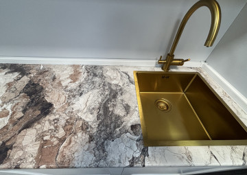 Влагостойкая столешница из пластика, стильной расцветки.