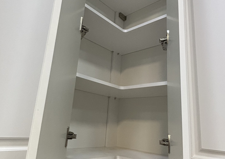 Фасады: Лонгфорд в белом суперматовом покрытии — гладкие, элегантные и приятные на ощупь, отлично вписываются в интерьер любого стиля.