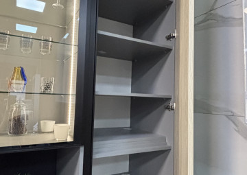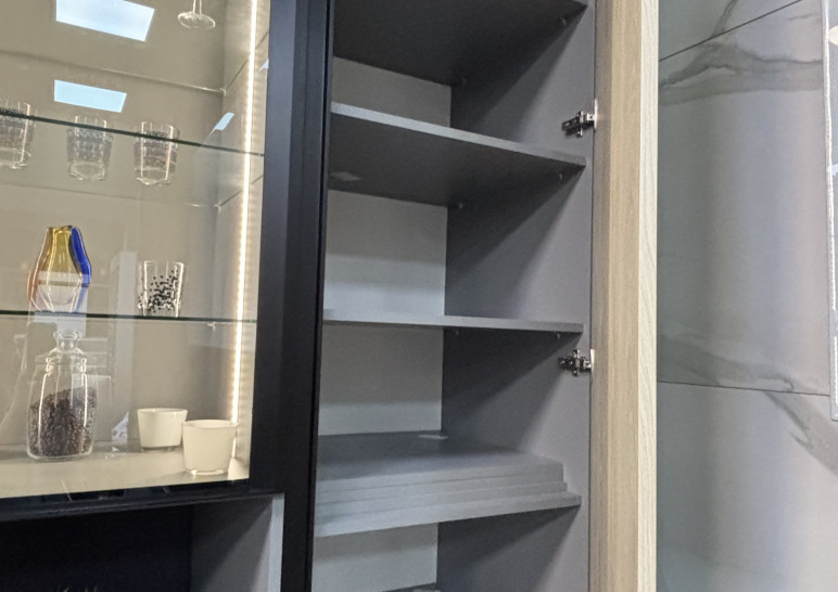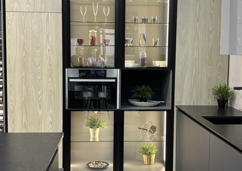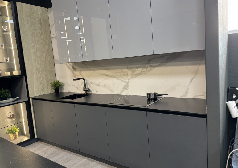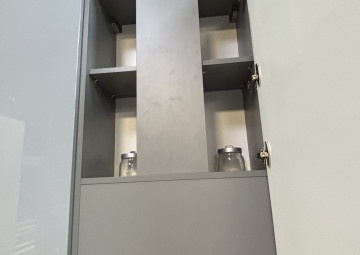 Уникальное предложение на рынке готовых кухонных гарнитуров! В составе которого есть все необходимые элементы для обустройства удобного и функционального интерьера. Выполненный в едином стилевом решении, он органично дополняет концепцию внутреннего оформления и позволяет грамотно организовать пространство кухни. Кухня с островом , верх эмаль глянец, низ матовый, с трендовой столешницей из компакт-плиты 12мм популярнейшего на сегодня цвета. Японская мойка бренда Omoikiri подклеена в столешницу. В распашных шкафах установлены корзины Kessebohmer. В шкафах витринах вертикальная врезная подсветка по центру, стекло графит. Остров размером 160х90см. Техника в комплект не входит.
