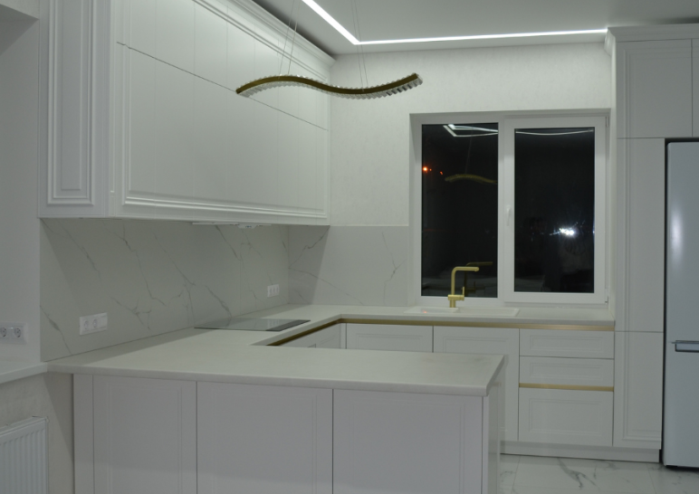 Элегантная кухня в стиле неоклассика с островом