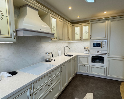 Столешница HPL Аргиллит Белый 38мм, Фурнитура Blum, ручки Гола профиль алюминий