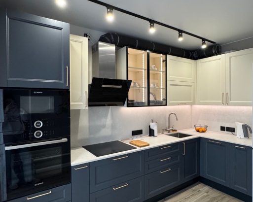Кухня в стиле неоклассика с встроенной техникой в Москве